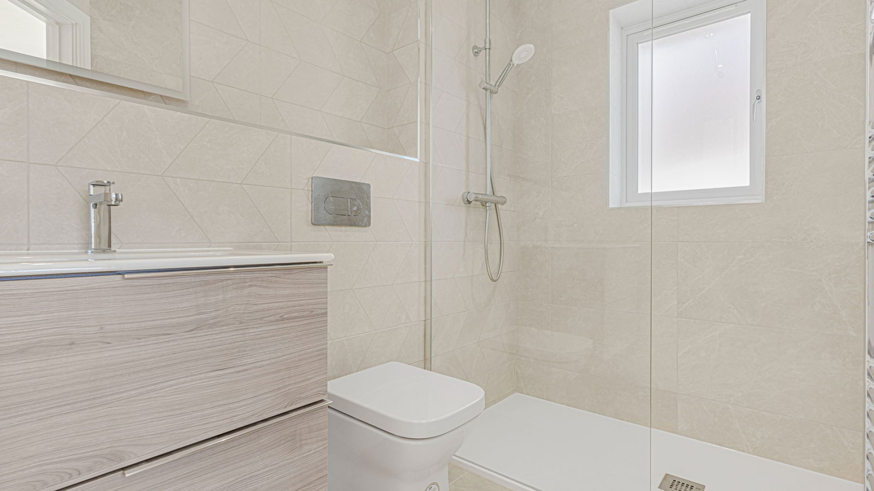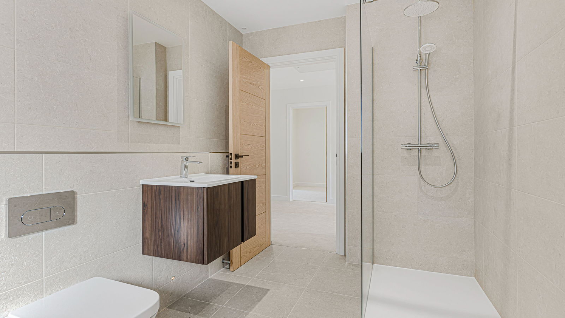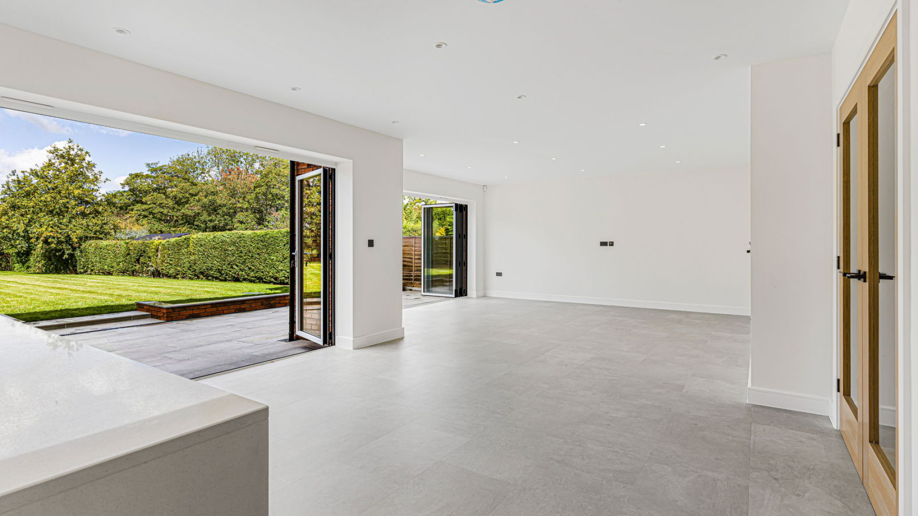 This striking new-build home has been constructed to an uncompromising standard, with a focus on detail and longevity. Energy-efficient features include warm air source heating and underfloor heating to the ground floor, enhancing both sustainability and everyday comfort. Throughout the property, premium finishes have been carefully curated—ranging from bespoke cabinetry and a made-to-measure kitchen, to high-spec Porcelanosa bathrooms and expansive glazing that invites light and nature into the heart of the home.