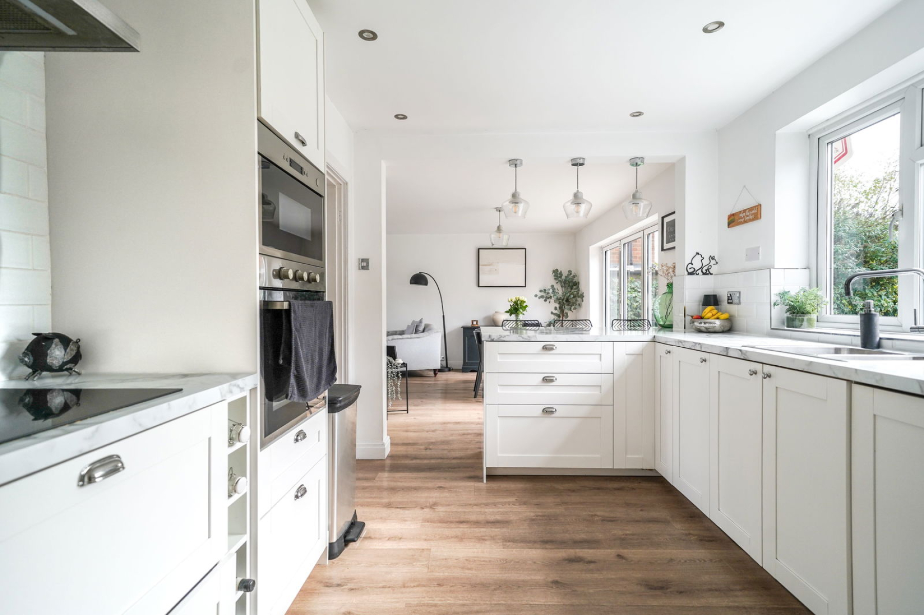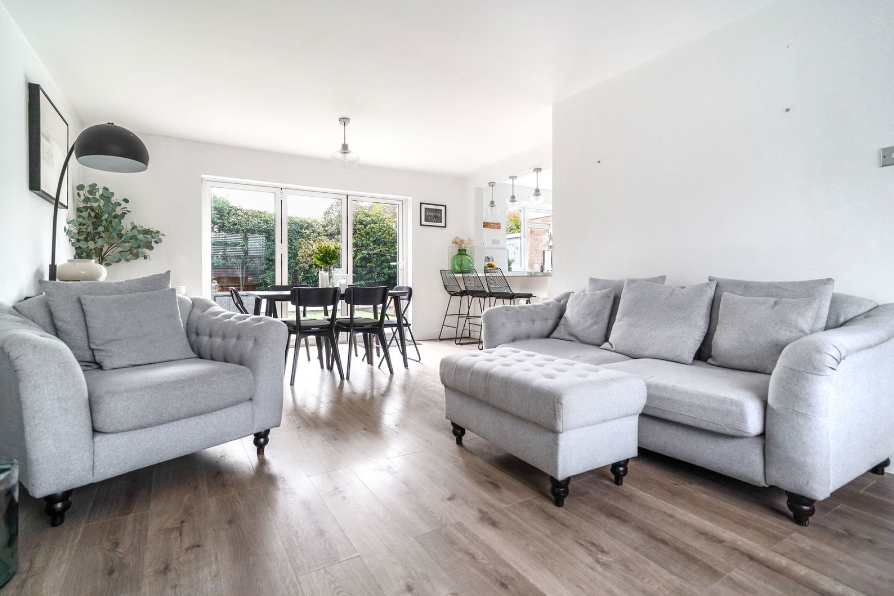 Nestled on the ever-popular Hollywood Lane, this stunning three-bedroom family home combines modern living with functional design. Upon entering through the porch, you are welcomed into a bright hallway leading directly to the heart of the property. The ground floor boasts a generous lounge/diner that spans the length of the home, offering plenty of natural light and versatile space for both relaxation and entertaining. The modern fitted kitchen is ideally positioned with access to the garden, complemented by a practical side passage that leads to an external WC – perfect for families and outdoor occasions.
