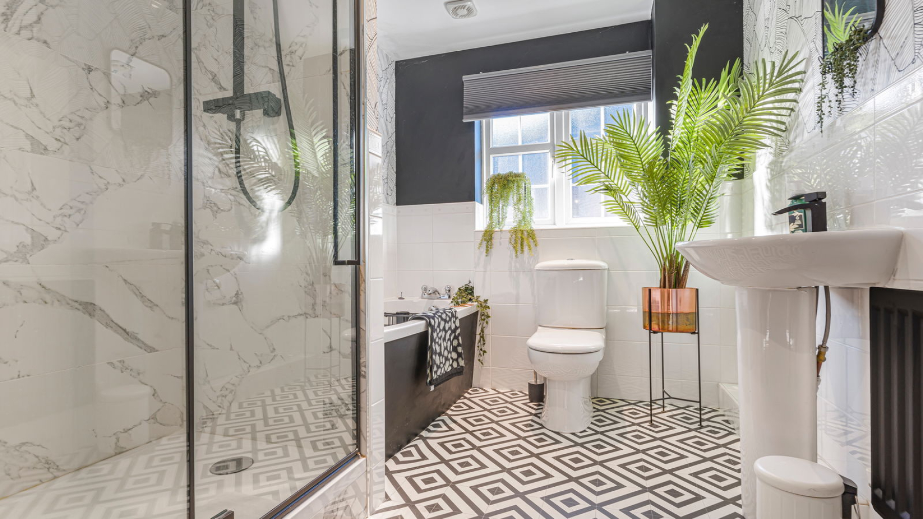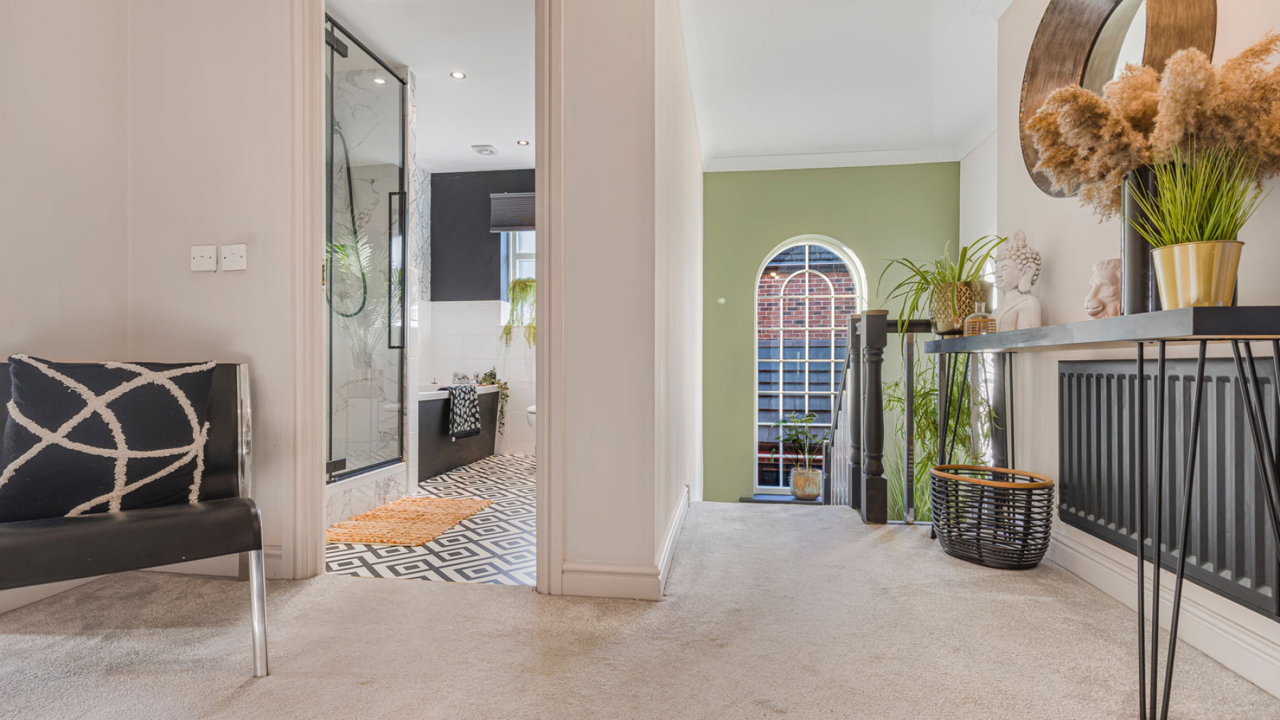 The re-fitted dining kitchen is a standout feature of the home, showcasing a sleek range of contemporary units, integrated appliances, a stylish breakfast bar, and ample space for a dining table—making it a perfect space for both everyday living and entertaining. A practical utility room is conveniently accessed from the kitchen. For those looking for open plan living, then Hollywood Lane has the potential through the removal of a stud wall to create this.