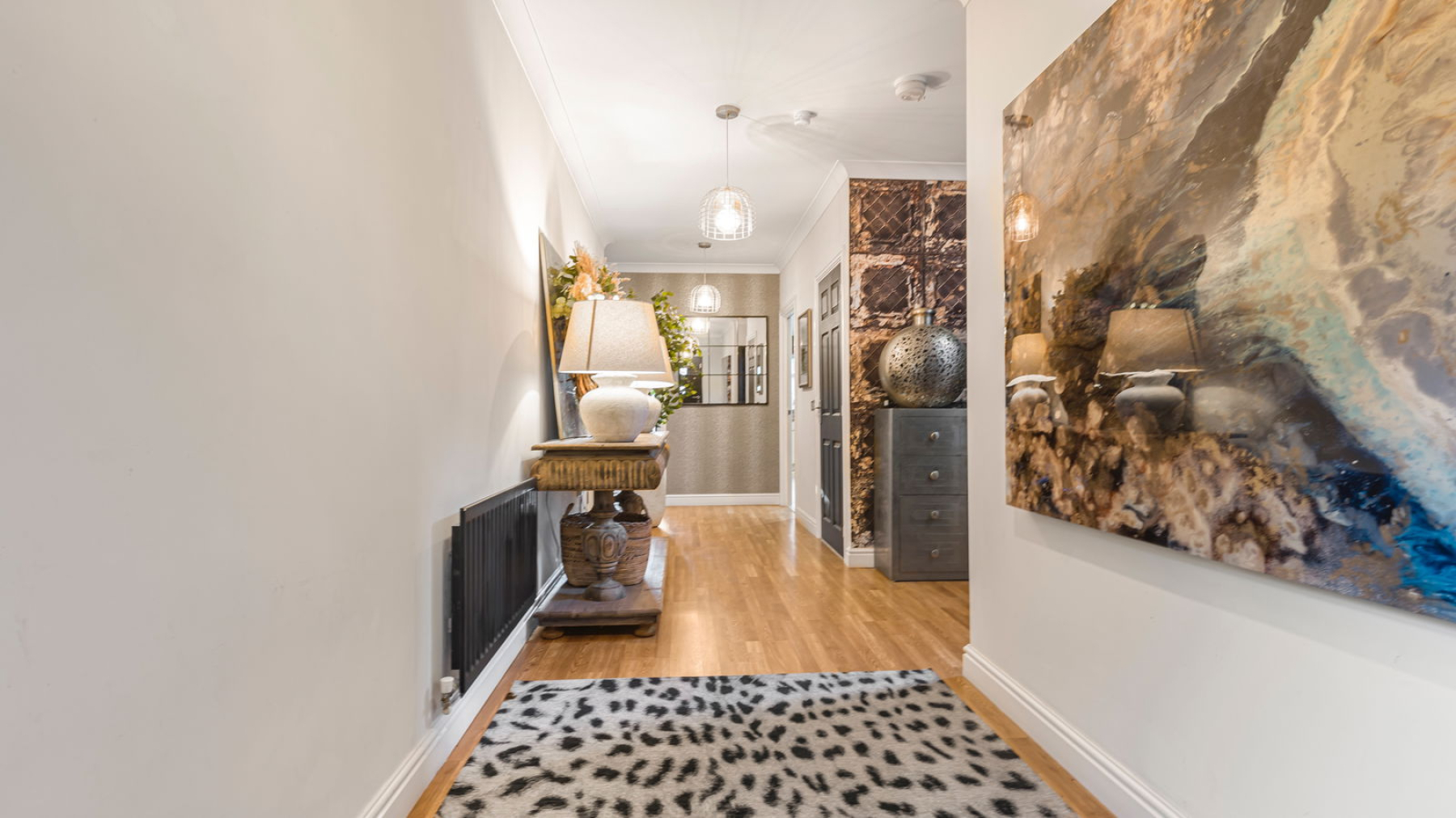 This distinguished detached family residence, positioned on one of the area’s most sought-after roads, offers beautifully presented accommodation finished to an exceptional standard throughout. Set well back from the road, the home is approached via an attractive block-paved driveway providing generous off-road parking and access to the integral garage, with a neatly maintained fore garden.