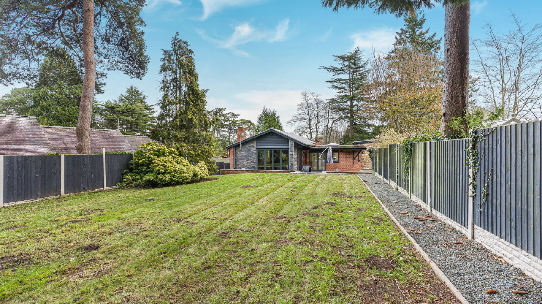 Outside, the gardens have been meticulously landscaped to provide privacy and tranquillity. The rear garden is mainly laid to lawn and bordered by mature trees and shrubs, ensuring a secluded setting. A spacious patio area offers an ideal space for outdoor dining, entertaining or simply enjoying the peaceful surroundings. A further additional patio area is positioned to the side of the property offering further potential to extend or create a space to enjoy those tranquil evenings.