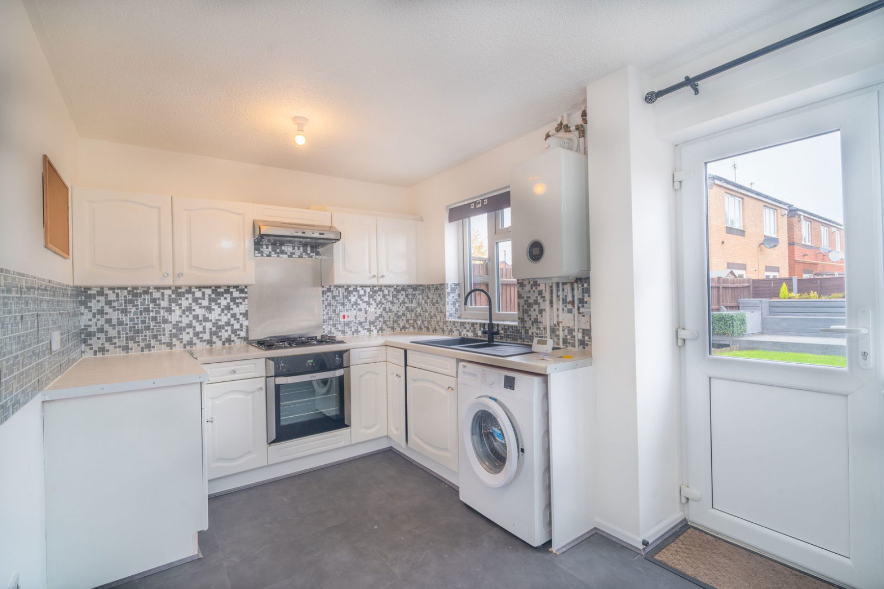 Externally, the property enjoys a well-kept rear garden with a modern finish, perfect for outdoor dining or leisure. To the front, there are pleasant open field views, adding a rare touch of tranquillity to this conveniently located home.